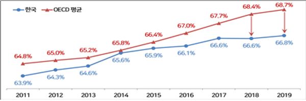 고용률 변화 및 경제 지표 분석 | 한국 고용률 상승을 긍정적인 성과로 보며, 안정적인 일자리 창출 노력의 결실이자 경제 활력의 증거라고 주장 | 고용률 상승을 질 낮은 일자리 증가에 따른 착시 효과로 보며, 청년 실업률 등 심각한 문제들이 여전하다고 지적 |